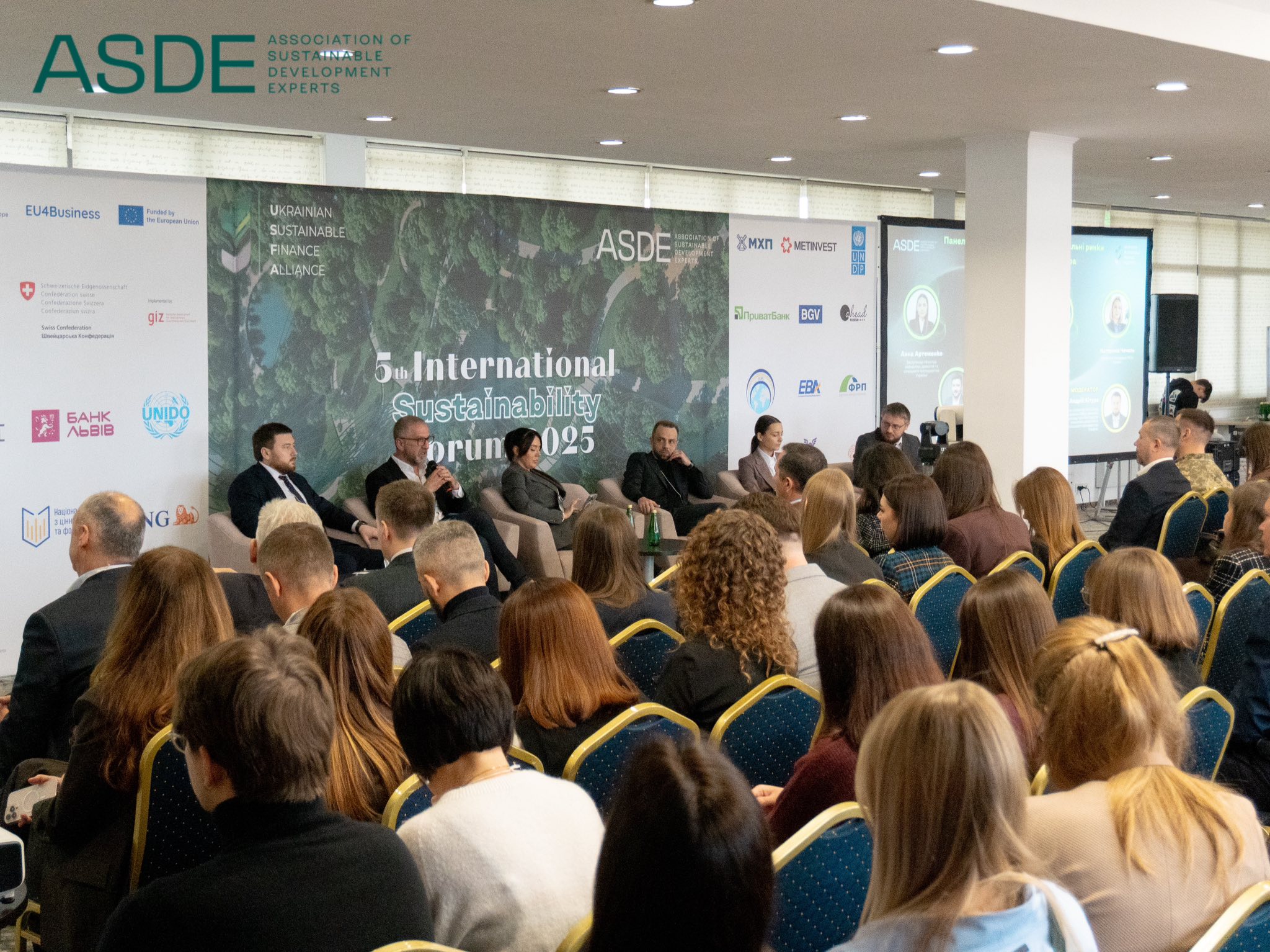 On October 30, the 5th International Sustainability Forum (ISF25) took place in Lviv – a large-scale event that brought together more than 2000 participants from various parts of Ukraine and around the world. The event was organised by the Association of Sustainable Development Experts (ASDE) together with the Ukrainian Sustainable Finance Alliance (USFA) and supported by partners.