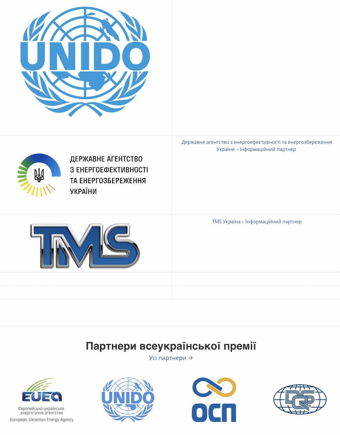 Всеукраїнська Премія: Лідери енергетичного менеджменту», реалізується Європейсько-українським енергетичним агентством (ЄУЄА) за підтримки Проєкта Організації об’єднаних націй з промислового розвитку (UNIDO) «Впровадження стандарту систем енергоменеджменту в промисловості України».